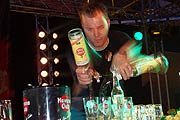 Lange Abendkleidung und Smoking, oder flippige Outfits unterstrichen die süddeutsche "Prosecco-Szene". 25 Euro Eintritt sind ein stolzer Preis, aber an Unterhaltung fehlte es nicht. Da hüpften die Schlagwerker "Power! Percussion" artistisch auf Aluleitern und Mülltonnen umher (woher solche Ideen immer kommen?) und die Gruppe "Right Said Fred" ließen das Publikum "Stand up" trainieren. Die sechs Jungs von Deutschlands ältester Boygroup "Gerry & Gary" heizten den Zuschauern dann richtig ein. Die nicht spielten tanzten, in der eigens dafür errichteten Diskothek. Niemand anderes als DJ Tom Novy (MTV Dancefloor Charts) wurde eingeladen für den richtigen Sound zu sorgen, unterstützt von den Talenten DJ Babek (Gong 96,3) und DJ Sam (Luderlob by G_Lounge). ©16.11.2002 Daniela Böhme für "wahrlich..." bei ganz-muenchen - Hier geht es zu den Fotos von der Gastroaward Süddeutschland Party im ICM am 16.11.2002 |