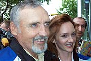 Die Biker-Kollegen Dennis Hopper und der aparte englische Charakterdarsteller Jeremy Irons, gehören zur Crew des "Guggenheim Motorcycle Clubs", welche im Jahre 1999 durch den Guggenheim Direktor Thomas Krens gegründet wurde. (Jedes Mitglied muss für diese Mitgliedschaft jedes Jahr tief in die Tasche greifen und der dazugehörigen Solomon R. Guggenheim Foundation Spenden zu kommen lassen) Ursprünglich wollten die Akteure nur schnell bei BMW am Frankfurter Ring (Niederlassungsleiter: Karsten Engel), ganz privat die zur Verfügung gestellten Motorräder abholen und ohne Presserummel die "kulturelle" Tour, die über den Großglockner führt und am Sonntag in Monza (Formel1 Rennen) endet, starten. Die Ankunft der Stars verbreitete sich jedoch wie ein Lauffeuer und über 100 Journalisten wollten sich diesen Auftritt nicht entgehen lassen. Sie warteten ungeduldig auf das medienwirksame Erscheinen und ließen sich mit asiatischen Häppchen und Valdo-Prosecco () die Wartezeit versüßen. "Wir wollen Spaß haben", grinste Jeremy Irons frech, während er sich einen langen Zigarillo in den Mundwinkel schob, wie einst der "Easy Rider" Dennis Hopper, der hinzufügte: "Wir werden nicht allzu schnell fahren, um auch noch die Natur genießen zu können. Außerdem schimpft mich sonst meine Frau" Seine wunderschöne Ehefrau Victoria Duffy, war die strahlende Erscheinung neben dem grauhaarigen Gentleman Dennis Hopper, der mit Stolzerfüllter Brust der Öffentlichkeit seine 5. Monate alte Tochter Galen Grier (keltischer Name) vorstellte. Die beiden folgten dem Biker-Daddy jedoch lieber im Begleitauto hinterher und ersparten sich somit die herbstlichen Regenschauer. BMW Manager Michael Kirsch (Leiter PR) war mit von der Partie und gestattete einen Einblick in die erste Etappe, die mit einem Besuch der "Anselm-Kiefer" Austellung und einem Abendessen beim Kunstsammler Taddäus Ropac, endet. Die weitere Streckenführung wurde nicht verraten, denn die prominenten Akteure wollen verständlicherweise unter sich bleiben. Gina Torres, seit September 2002 mit dem 42. jährigen Fishburne (Cotton Club) verheiratet, verriet mir jedoch, wie gespannt sie auf die Formel 1 und Michael Schuhmacher ist, denn sie hat noch nie ein Autorennen miterlebt. Wer übrigens annimmt, dass Weltklasse Darsteller wie diese drei es bekanntlich sind, in feinem Zwirn und nobler Ausstattung, unterwegs sind, der hat sich gewaltig getäuscht. Laurence Fishburns Motorradanzug ähnelt dem Modestyling der 70er Jahre, wahrscheinlich wurde er auch in dieser Zeit erstanden und die abgewetzte Reisetasche von Jeremy Irons hat auch schon bessere Tage gesehen. Resumeé der Veranstaltung: auch Hollywood Schauspieler mögen es simpel und werden, wie mir ein Gutaussehender weizenblonder BMW Mitarbeiter versicherte, in relativ bescheidenen Unterkünften wohnen. Der einzige Wermutstropfen des Tages war das Fernbleiben von Lauren Hutton, die sich von ihrem Motorrad-Sturz kürzlich in Nevada, noch nicht erholt hat und der nicht anwesende Keanu Reeves. Auf Grund von verlängerten Drehtagen seines aktuellen Films "Constantine", der demnächst im amerikanischen Kino anläuft (basiert auf DC Verigo Comic Buch "Hellblazer": er spielt darin einen Dämonenjäger), musste er diesem Ausflug fernbleiben. Beim Schreiben der Rubrik am 11.September und in Erinnerung der Ereignissen in den USA im Jahr 2001, kann ich nur dem Wort Ausdruck verleihen, das Laurence Fishburn mir auf seinem Autogramm hinterließ: "PEACE". ©10.09.2003 Daniela Böhme für "wahrlich..." bei ganz-muenchen - Wir waren mit Digicam für Sie dabei, über 60 Fotos sind das Resultat für Sie (weiter) Noch mehr "Wahrlich..." Geschichten auf der |