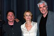 Kirschrot schlängelte sich der über100 Meter langen Teppich die Straße am Mathäser Kino entlang. Jungfräulich roch der Kleber, der langsam durch die hereinbrechende Sommerhitze das Weite suchte. ..und husch, husch, husch da trollte sie sich die „Tunten-Traumschiff“- Crew, allen voran Michael (Spucky/ Bully) Herbig, der in seinem Ostfriesen-Outfit strahlte wie ein Honigkuchenpferd. Irgendwie hatte ich beim Zusehen das Gefühl er schwebte über allem hinweg, so berauscht schien er von dem Gekreische seiner Fans zu sein. „Das soll ein Film für das Volk, für seine Wähler sein. Ihnen alleine soll es gefallen und überhaupt ich bin soooo happy“, jappste er, nach dem er bereits unzählige Autogrammkarten unterschrieben und immer wieder dieselben Fragen beantwortet hatte. Aber er hielt sein Versprechen und stellte sein Publikum allen voran, auch den zahlreich erschienen Prominenten. „Der Film ist schwul, super wunderbar“, griente Wigald Boning in seinen rosa farbigen Shorts. Dahinter tänzelte Otto Waalkes in gewohnter Manie „Ich liebe die Vulkanetten“ stöhnte er griff nach einem Weißbierglas und spuckte in hohem Bogen ein Fontäne entlang dem roten Teppich. (…wer`s lustig findet…..). Viel Erfolg wünscht er dem Film, er selber schaute sehr traurig aus Bernd Eichinger stand zittrig vor mir, seine vom Rauchen gezeichneten Zähne zeichneten sich hinter dem angedeuteten Lächeln ab. Er wollte wohl seiner Tochter Nina das Strahlen überlassen. Bildhübsch und ein Dekoltee!!! eher ablichtungswürdig als das von Michaela Schaffrath (die mit ihrem „Ich hab auch Augen du Arsch“ - Shirt es geschafft hat in allen Gazetten abgelichtet zu werden und die mit ihrer Natürlichkeit und ihrem Charme den Beruf „Gina Wild“ langsam abstreift). Ottfried Fischers Gang über den red carpert glich wie immer einem Gang zu Knossos. Seine gut proportionierte Tochter (mit Bade-Flip-Flops) im Schlepptau, machte ihm der warme Abend schwer zu schaffen. Aufgeregt dagegen der beliebte Stefan Raab. 13 Songs aus seiner Feder untermalen den (T)Raumschiff Surpise Film. Sein Outfit ließ zu wünschen übrig (graues, verwaschenes Shirt, labbrige Hose und olle Jeans-Jacke), aber seine Fans liebten ihn und das Wichtigste: die Musik ist einfach super!! Directly aus den USA kam Hauptdarsteller Til Schweiger und seine entzückende Frau Dana. Er ließ sie kaum aus den Augen und streichelte verliebt ihren Rücken. Seine Schwarzenegger-Spruchabwandlung „Ensalada mista, Baby“, wird sicherlich bei den Kids verbale Nachahmung finden. Resümierend kann ich feststellen: Action, Animation und handwerklich ausgereifte Technik sind eine Basis, die einen Film sehenswert machen. Auf eine Fortsetzung "Periode 2" warten nun sicher u.a.: Rudolph Mooshammer (ganz schön füllig geworden), Regisseurin und Oscar-Preisträgerin Caroline Link (mischte sich still und heimlich unter das „Volk“), Radio Gong - Chef Georg Dingler, Philipp Greffenius und seine bildhübsche Gattin (schlank im 5 Monat), die ewig junge Christine Kaufmann, Howard Carpendale mit Freundin Donnice Pierce (setzte ihre schwarze Brille nicht ab, warum nur?), Barbara Schöneberger, (die gekonnt durch den Abend moderierte und das wohl unpassendste Kleid der Veranstaltung anhatte berät sie den keiner?), der Mit-Liebling der Fans Kai Plaume, der zusammen mit seiner Frau Ilke kam (pinkes Outfit mit Strand-Clogs premierentauglich?), Bastian Pastewka, Abi Ofraim und sein hinkender Sohn Gil (Fußballverletzung „oh..der Arme“), der bestens gelaunte Michael Mittermaier mit singender Gemahlin Summer Sold, Regisseurin Doris Dörrie (rosa Strass-Brille), Sophie von Kessel in fester Umarmung mit Martin Bachmann (Columbia TriStar Chef), Fred Kogel (Vorstand Constantin Film), Sunnyi Melles, Alexandra Neldel, Nina Ruge (ZDF Leute Heute), Käpt`n Kork Christian Tramitz (schwitzte sichtlich in seinem langärmligen schwarzen Pulli) und viele, viele mehr.. ©19.07.2004 Daniela Boehme für ganz-muenchen.de Noch mehr Geschichten auf der ![]()