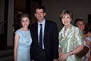 24, 36, oder die 48 Schwäne die an diesem Premierenabend klassisch-synchron über die Bühne „balletierten“ - der „Größte Schwanensee der Welt“ von Peter Iljitsch Tschaikowsky ist ein künstlerischer Genuss. Das Prinzregententheater erlebte an diesem sommerlichen Abend eine konservative Inszenierung in altmodisch schöner Kulisse. 150 Akteure des russischen Staatsinstitutes für Ballett in Perm vollführten wahre Kunststücke im Gleichschritt. Auch wenn manche Ballerina eine auffällig weibliche Figur aufwies und der blond gelockte, extra vom St. Petersburger Kirov Ensemble ausgeliehene Jüngling Ivan Popov als Prinz Siegfried in Harmonie, tanzstilistischem Ausdruck und Standfestigkeit ausgerechnet am Premierenabend nicht gerade die angepriesene „Starqualität“ erreichte, waren die Premierengäste begeistert. Allen voran die hinreißende Volksschauspielerin Ernie Singerl, die mit ihren 83 Jahren einen Luftspagat hinlegte, dass meine jungen Knochen „Aua“ schrieen. „Ich habe selber 10 Jahre lang getanzt;“ erinnerte sich Nina Ruge, die Society Lady des ZDF. Die schlanke durchtrainierte Figur im farbenfrohen Lagenkleid bewies es eindeutig. Als Tschaikowski-Fan outete sich Joachim „Blacky“ Fuchsberger, der zusammen mit seiner Frau Gundula und seinem Sohn Thommy (wieder ganz gesund) die Aufführung in vollen Zügen genoss. Allen voran an diesem Abend die fantastisch aussehende Carola Höhn. Einst Kollegin von Marikka Röck, schwärmte sie von der tänzerischen Darbietung und bewies das 94 Jahre kein Hindernisgrund sind positiv und strahlend zu wirken. In der Geschichte der Inszenierung des Schwanensees gibt es etwa 150 unterschiedliche Choreographien. Das Verlangen nach Romantik, Liebe auf den ersten Blick, Personenverwechslung, sowie der Kampf zwischen Gut und Böse, erlebt auch in der heutigen Gesellschaft enorme Anziehungskraft. An diesem Abend in München triumphierten die Liebenden und eine Märchenwelt ließ den Betrachter in ein Bad voll bezaubernder Schönheit tauchen, die es gestattete aus der Realität des Heute zu entfliehen. Den Wagemut ein riesiges Corps de Ballet auf eine deutschgenormte Bühne zu präsentieren durften miterleben: Caroline Reiber (kam mit Sohn und Schwiegertochter), Moderatorin Uschi Dämmrichvon Luttitz, Bayerischer Staatsminister Erwin Huber und Gattin Hella, Alice und Ellen Kessler, Altbürgermeister Georg Kronawitter, Dr.Antje-Katrin Kühnemann (im traumhaften cremefarbenen Valentinokleid), Sängerin Jean Orleans, Ex-Eisläufer Manfred Schnelldorfer, Wirt Kay Wörsching (wie immer gut gelaunt), Opernsänger Gregor Prächt ( im Gammellook und Drei-Tages-Bart), Petra Schürmann, Schriftstellerin Ellis Kaut und drei entzückende Prinzessinen namens Lisa, Paulina und Elena u.v.m. ©03.08.2004 Daniela Böhme für ganz-muenchen.de Noch mehr Geschichten auf der