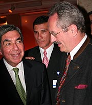 Das Fußballspiel Deutschland gegen Costa Rica brachte nicht nur dem ZDF Traum-Einschaltquoten, sondern führte den Menschen das Land Costa Rica näher. Zwei Tore schossen die Südländer gegen die Deutschen, auch wenn sie letztlich unterlagen, freuten sie sich fair und waren stolz auf die erbrachte Leistung. Die Costa Rica Arena im Forum am Deutschen Museum gab zwischenzeitlich mehr als zwei Wochen bis einschließlich 11.06.2006 speziell den Münchnern Gelegenheit, Land und Leute kennen zu lernen. Stolz besuchte am Abend vor dem Ende der Costa Rica Arena dieselbe auch Dr. Óscar Arias Sánchez, der am 8. März 2006 zum zweiten Mal wiedergewählte Staatspräsident von Costa Rica. Der Friedensnobelpreisträger, der 1987 für sein Engagement für die friedliche Beilegung von Konflikten in Mittelarmerika diese hohe Auszeichnung erhielt, steht für die Weiterführung der wirtschaftlichen Demokratie. In seiner Rede machte Dr. Sanchez deutlich, wie wichtig Fortschritt und Investition sei. Costa Rica ist heute erfolgreich nicht nur im Export für Bananen und Kaffe tätig, besonders der Ausbau des High-Tech-Sektor (z.B.Chipherstellung der Firma Intel) ist ihm ein großes Anliegen. Wichtig ist es ihm den Frieden und Wohlstand in seinem Land zu garantieren, um den Tourismus weiterhin zu fördern. Für Deutsche ist Costa Rica mittlerweile ein Geheimtipp zum Verreisen geworden. Kannte vor Jahren noch kaum einer die „Schweiz Mittelamerikas“, wird sie als Feriendomizil immer beliebter. Taucher finden herrliche Riffe und seltene Fischarten vor, Abenteuerurlauber zahlreiche Nationalsparks, Vulkane und Nebelwälder, Strandverwöhnte kilometerlange friedliche Einsamkeit. Der sympathische Dr. Hans-Dietrich Genscher, Bundesminister a.D., bestätigte das zunehmend in seiner kurz gehaltenen Rede. Als Ehrenstaatsbürger von Costa Rica hat er das Land lieben und schätzen gelernt. Die Bevölkerung ist südländisch offen und gastfreundschaftlich. Die Wertvorstellungen sind die den Europäern gleich und soziale Rechte haben oberste Priorität. Während der Folkloretänze der Gruppe „Mi Linda Costa Rica“, den Klängen der costaricanischen Gruppe „Editus“, die einen richtig guten Sound drauf hatten und einem hervorragenden Buffet mit Landesspezialitäten, gab sich der Präsident ungezwungen. Er schüttelte jedem die Hand, ließ sich umarmen und fotografieren volksnäher geht es kaum. Ein Sympathieträger, dem wir die Freude sein Land repräsentieren zu dürfen abnehmen. Mit dabei an diesem Abend auch Münchens Oberbürgermeister Christian Ude, Costa Ricas Außenwirtschaftsminister Marco Vinicio Ruiz, Tourismus Minister Carlos Benavides Jiménez und Silvia Ulloa, Marketing Director Costa Rica Tourist Board (ITC), Dr. Jana Maria Dressler, Frankfurter Honorarkonsulin der Republik Costa Rica, verschiedene ehemalige Minister Costa Ricas, die "Bananenbotschafter" vom Produzentenverband Costa Ricas, Jorge Sauma Aguilar, C.E.O. Corbana S.A. & Joaquin Gonzalez, Director Corbana S.A., Vertreter der Costa Ricanischen Fernsehanstalt Repretel, deren Canal 6 zu Beginn der Costa Rica Arena live samt Starkoch in der Arena anwesend war, sowie zahlreiche Gäste aus München und Costa Rica. ©10.06.2006 Daniela Boehme für ganz-muenchen.de - Fotogalerie (Imágenes) Costa Rica Arena - Besuch Dr. Óscar Arias Sánchez - 10.06.2006, Teil 1, Teil 2, |